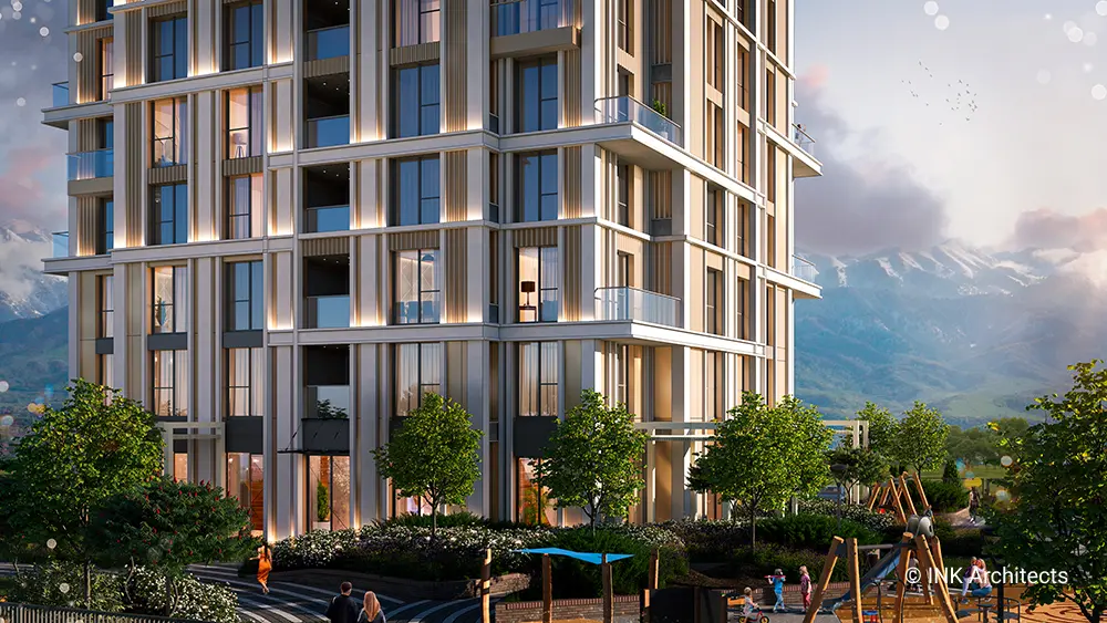 With a focus on exclusivity, the development prioritizes privacy and tranquility while maintaining close proximity to urban amenities. The architectural composition integrates sustainable materials and advanced building technologies, ensuring both longevity and energy efficiency. Thoughtfully designed terraces and common spaces enhance the sense of community while offering residents a serene retreat from the city's bustle.