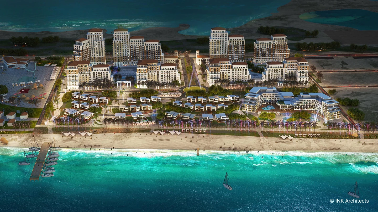 The beach will have a continuous pedestrian promenade that will serve other developments down the coastline. Moreover, bright-finished minimalistic villas will contribute to diversity in stay options and the beach image.