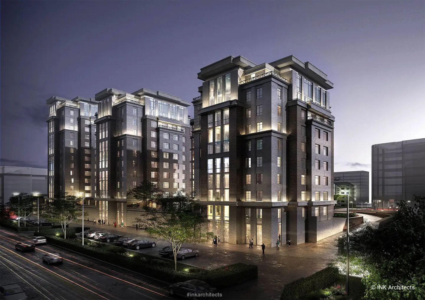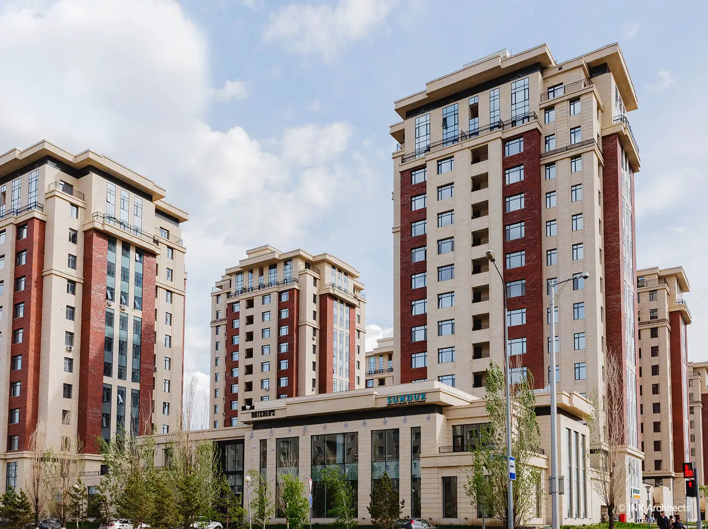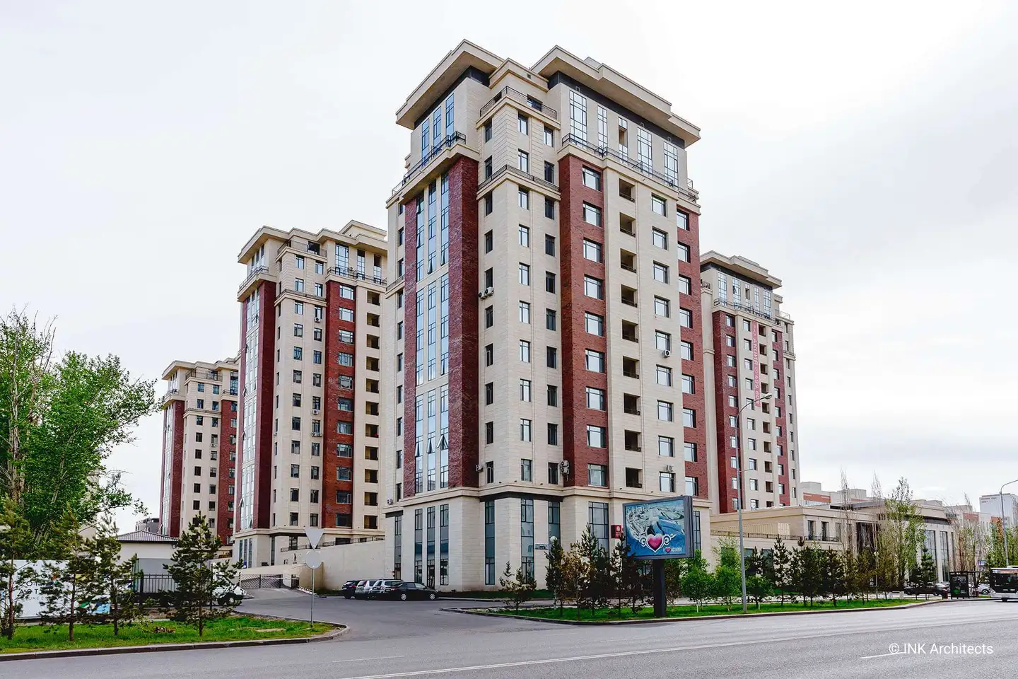A residential section of Arnau, the premium class community of Astana. The conceptual basis is an image of aristocratic restraint in simplicity and monumental austerity of the structure’s overall composition. The architecture relies on the constructive logic of combining traditional rationalism with the aesthetics of the color weightlessness of linear rhythms in high-tech style structures.