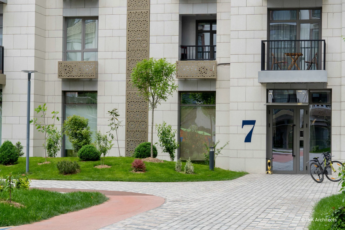 The project's conceptual basis was the desire to create a comfortable residential complex that would fit organically into Tashkent's historical and cultural context. It is located in a well-developed area with the stations of the Uzbekistan and Yunusabad metro lines nearby and the central train station. The buildings' architectural form was designed to modernly interpret the historical heritage and the international principles of functionalism.