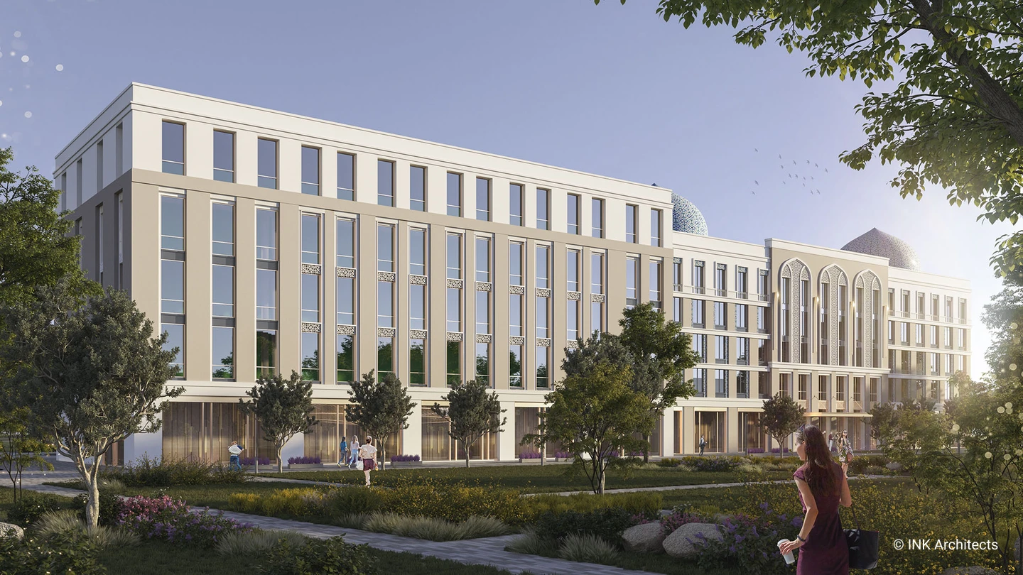 The 1.75 ha site is located in the most culturally rich area of Tashkent, the Almazaran neighborhood. Sited next to Abdullah Kadiri's museum and park, the hotel guests could access Natural History Museum and colorful Eski-Juva and Chorsu markets across the road.