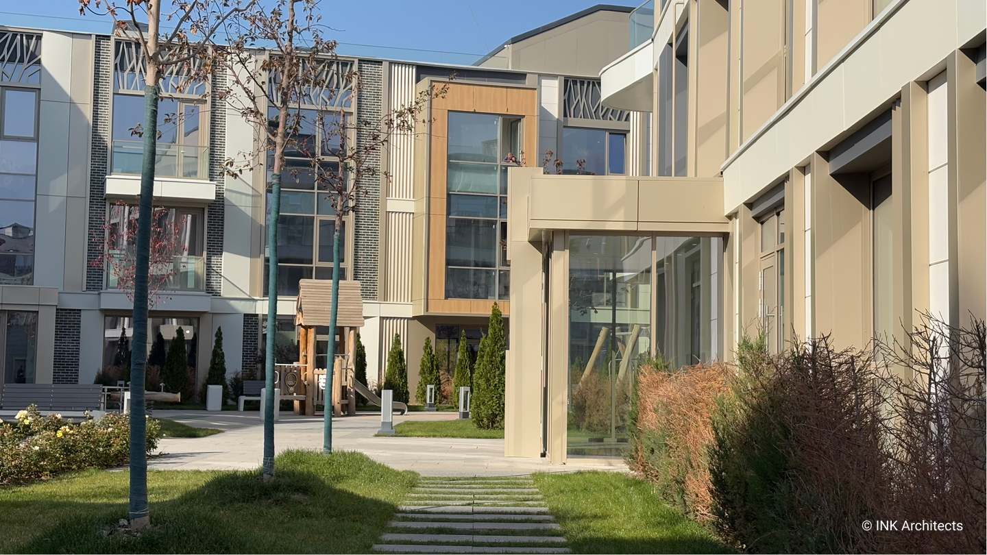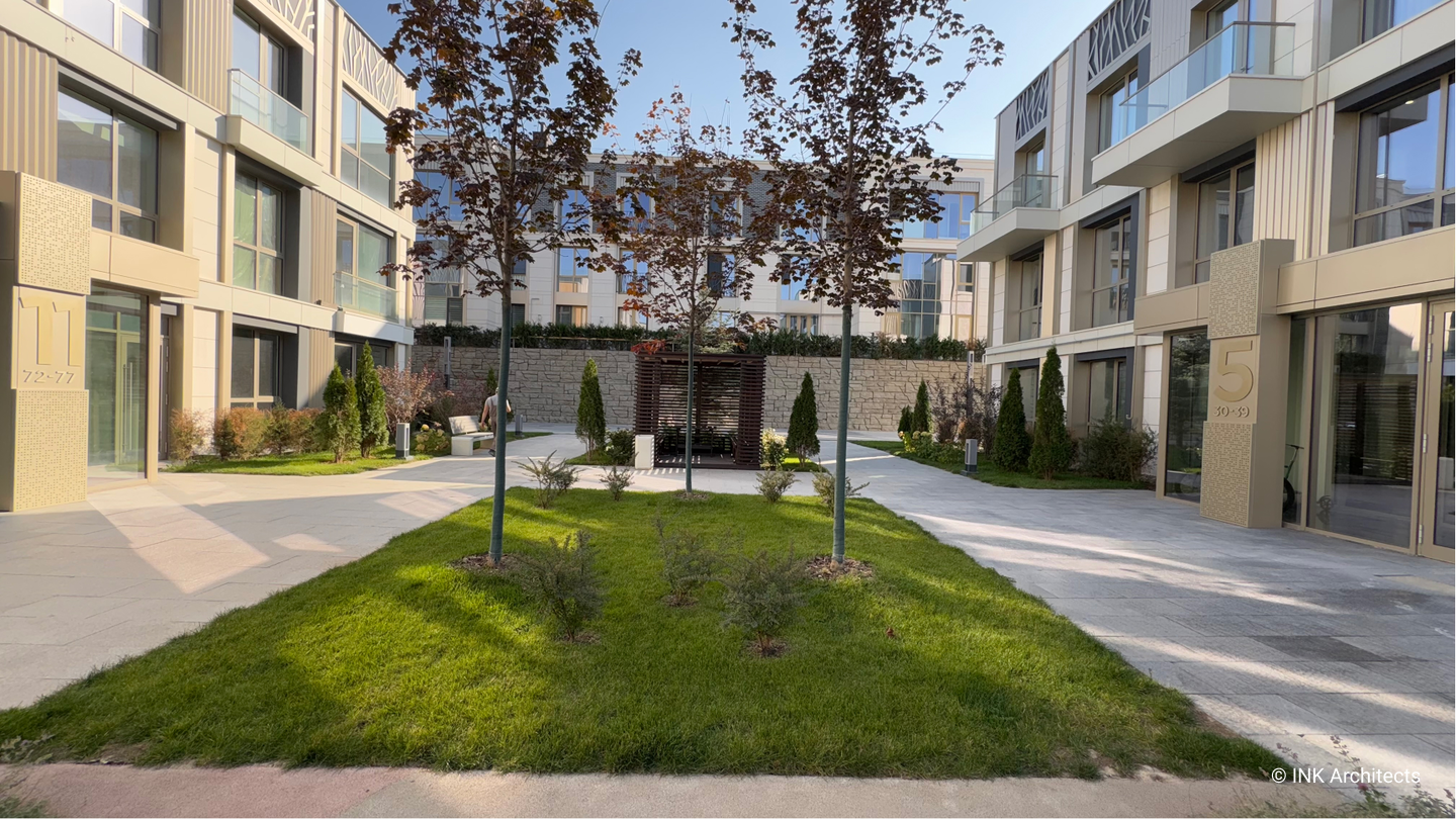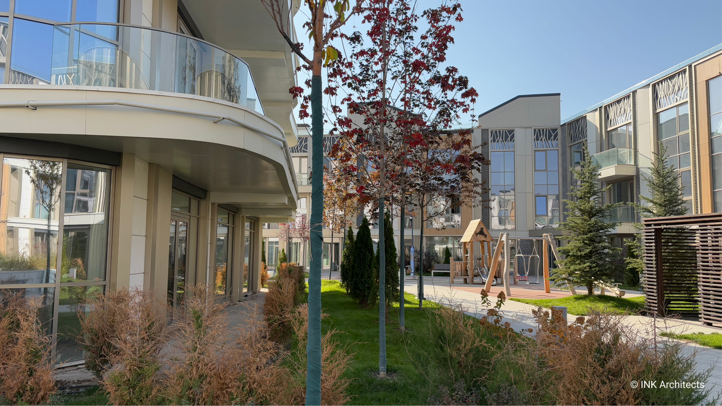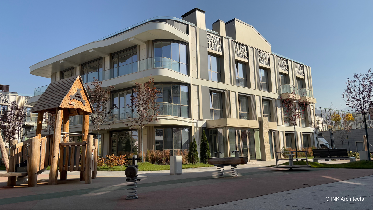 The President's Park complex is located in a very picturesque place: next to the First President's Park and Zhailau Golf Club. This is one of the major recreational areas of the city, so it was important to preserve the atmosphere of comfort of the recreation area and at the same time create a self-sufficient cozy urbanized environment.