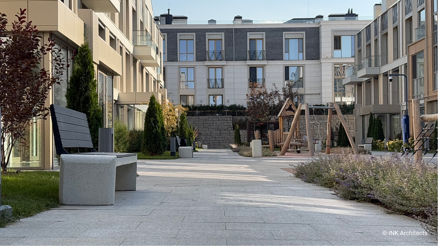 The President's Park complex is characterized by a particularly careful attitude both to the external surrounding landscape and careful development of the volumetric and spatial composition of the complex. It represents a modern neighborhood with the features of country palaces of manor type.