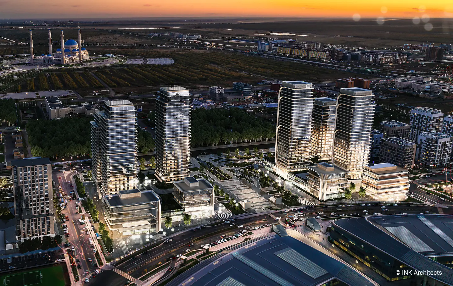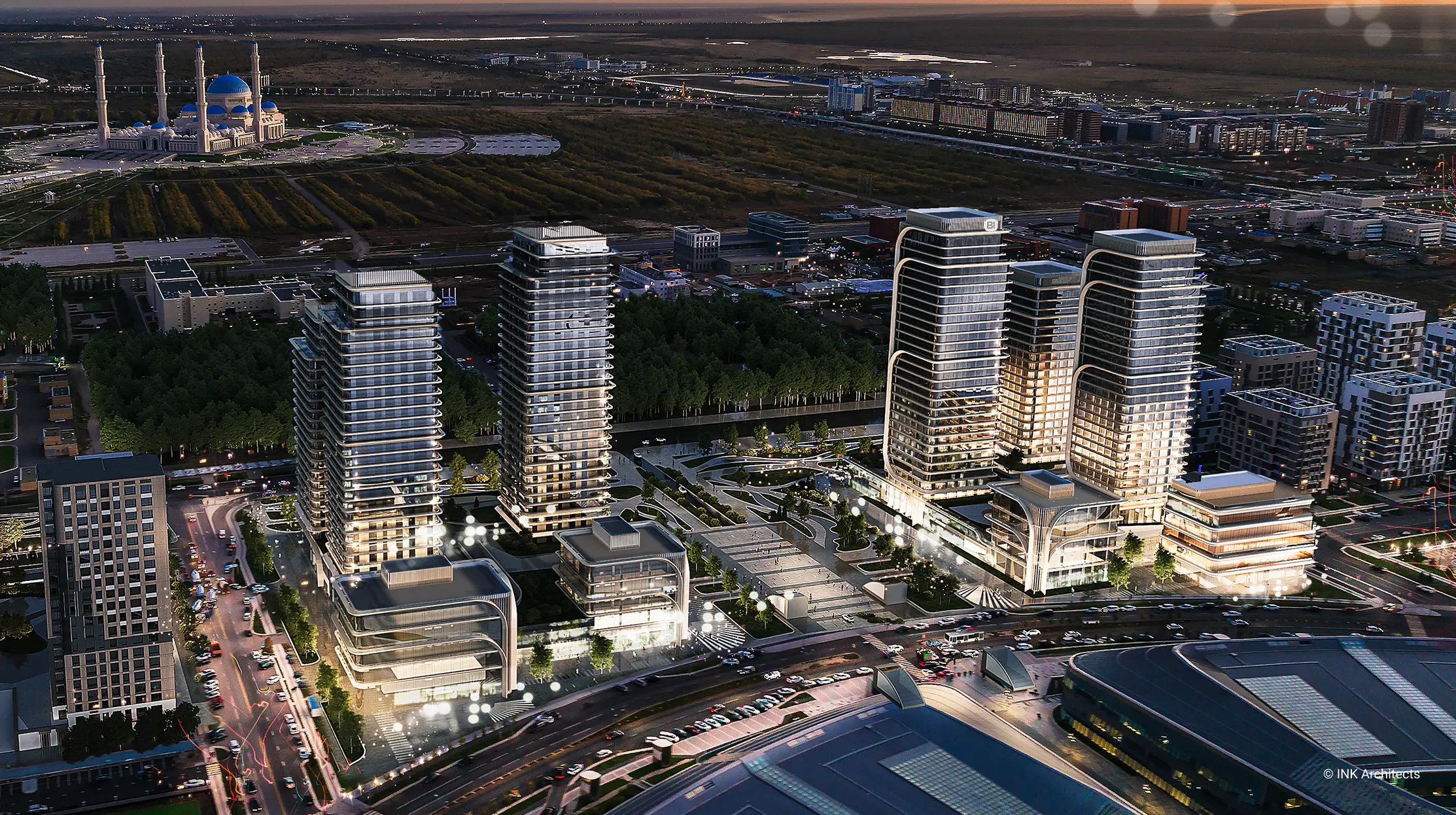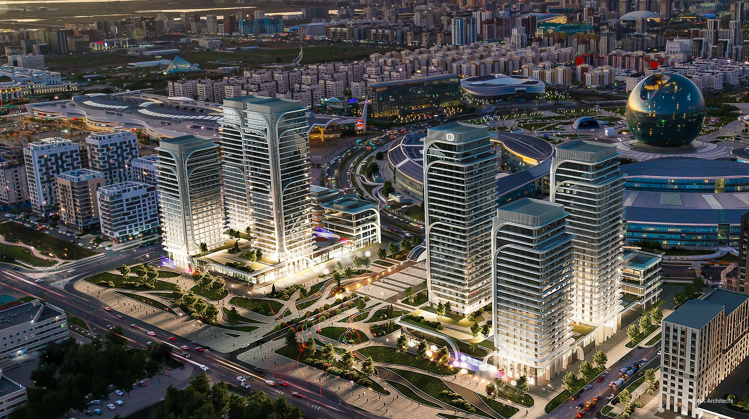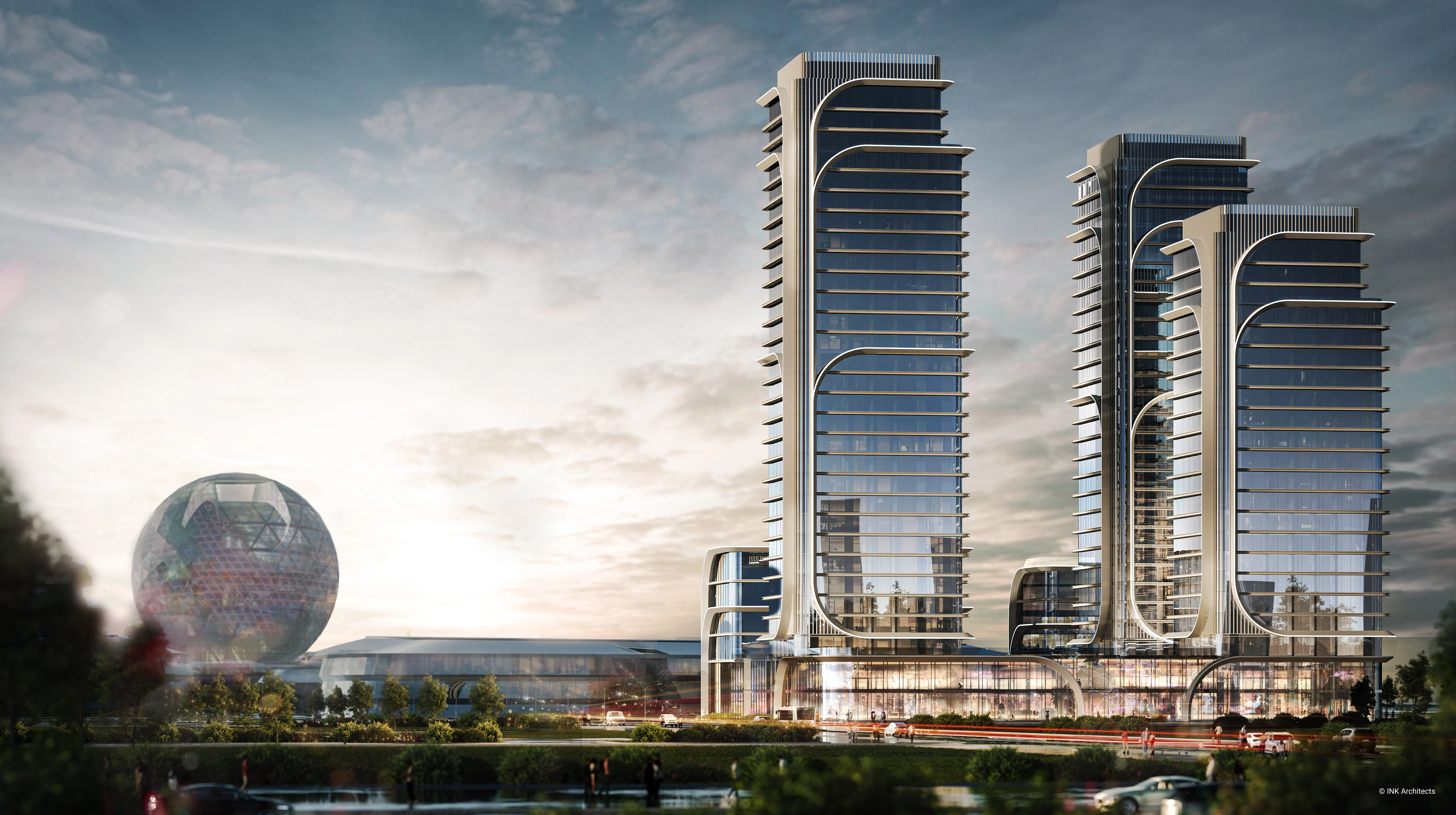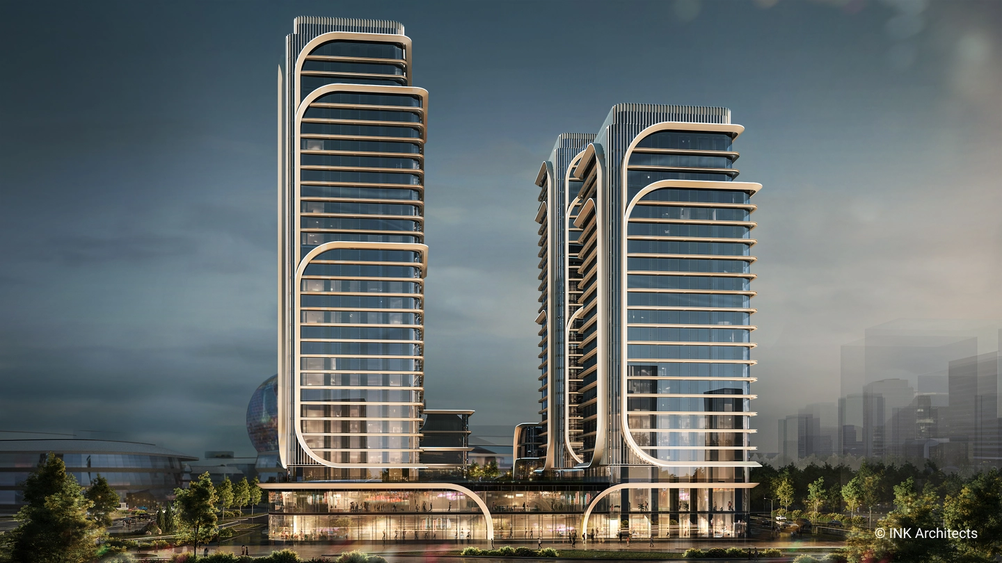 NEXPO GLOBAL is a residential complex concept by GROUP INK Architects located in Astana, the capital of Kazakhstan. The buildings' architectural form is inspired by the wheat stalk, an important symbol in Kazakhstan's culture.