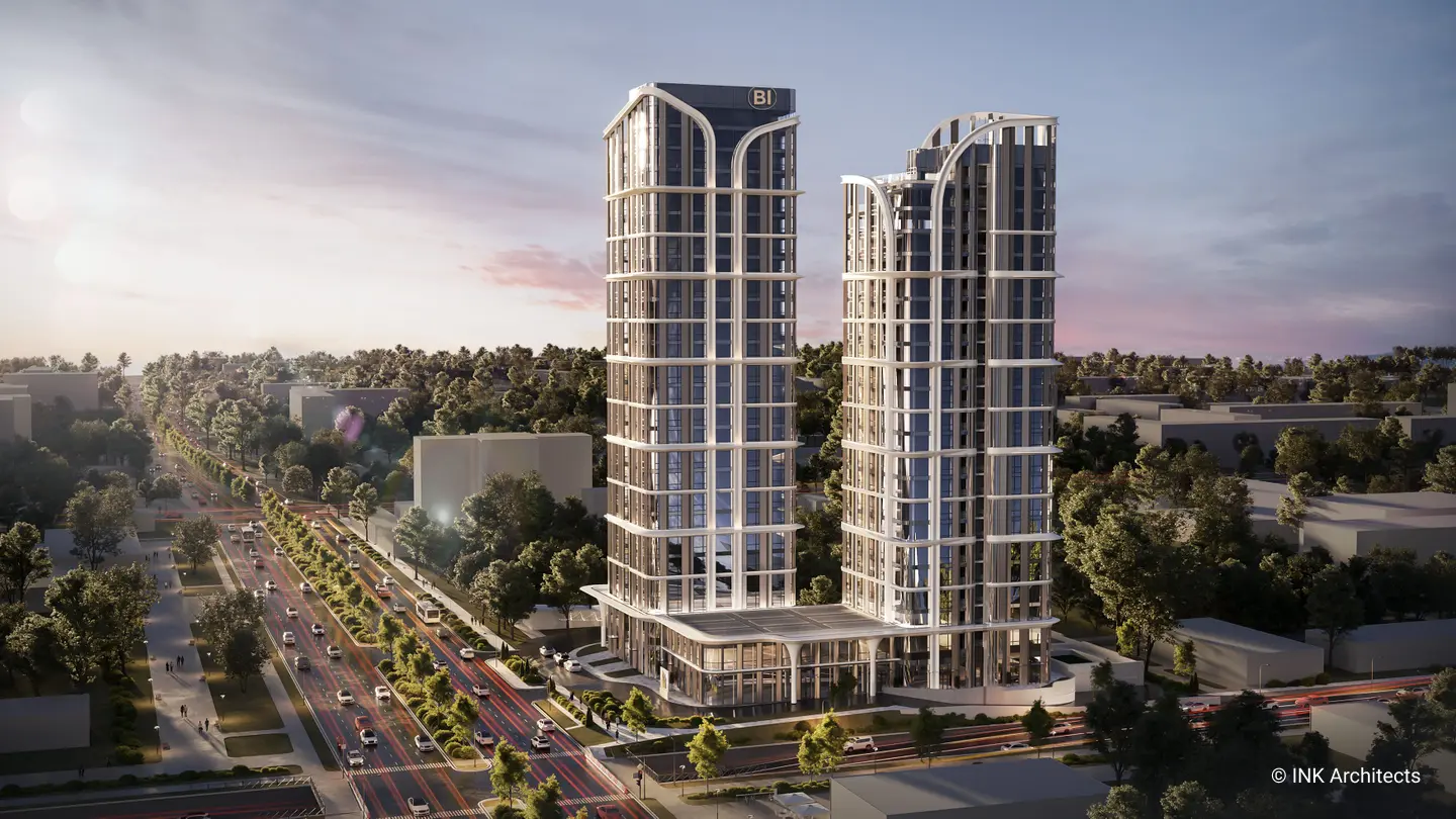 The goal of the project was to create a quarter-based development with well-developed infrastructure and comfortable living conditions. The complex consists of two residential skyscrapers of varying heights—26 and 21 stories—offering picturesque views from the upper floors.