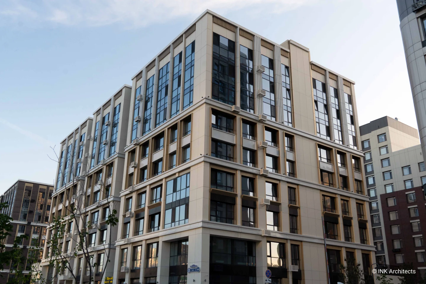 The heart of the residential complex will be a walkway - a space isolated from the noise and bustle of the urban center. The INK Architects team sought to develop a public space that harmonizes with the architecture through the form and selection of materials. A quality and aesthetic environment educates people, especially children. It develops their taste, creative thinking and fine worldview.