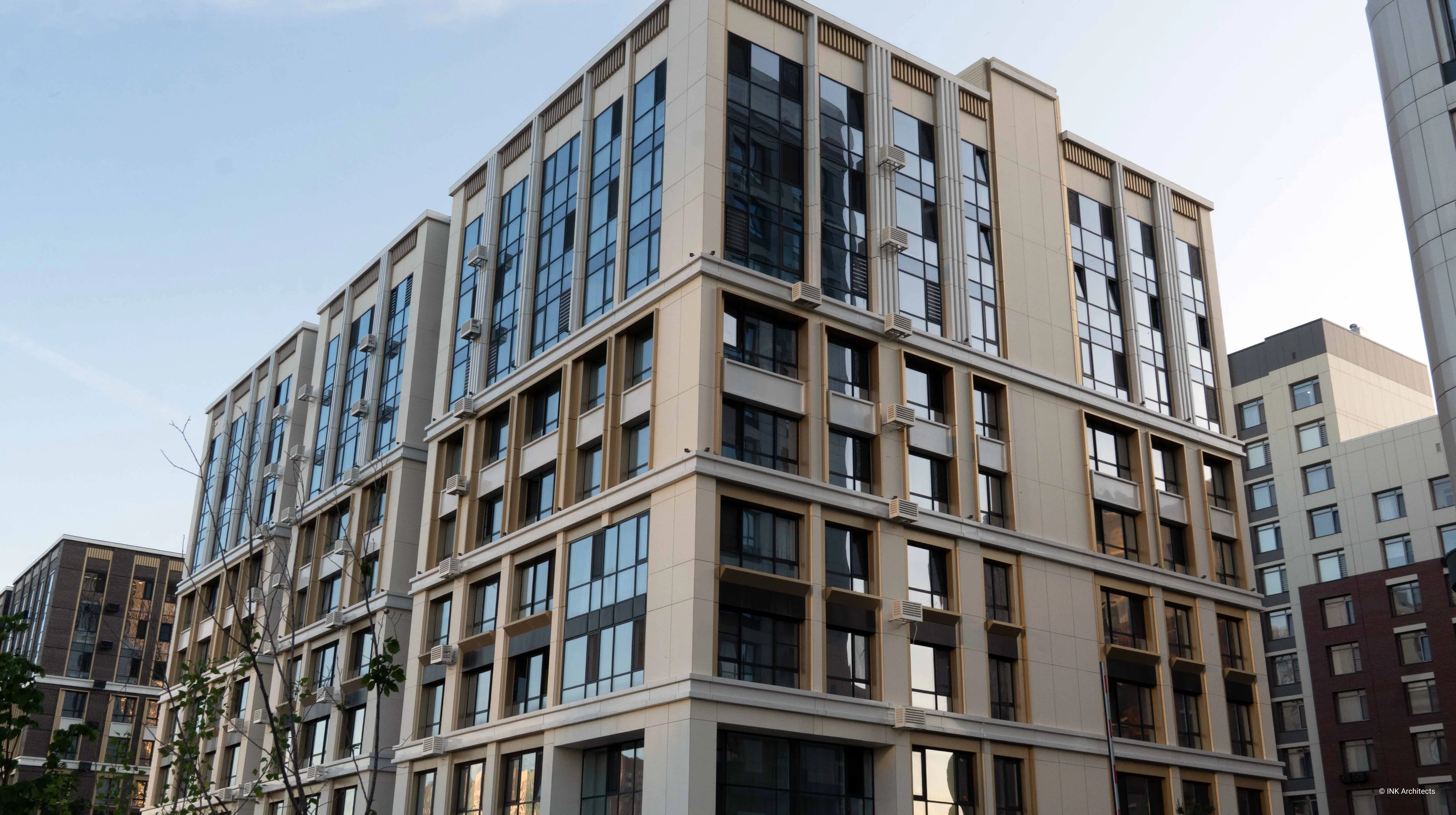 For visual diversity and to create a sense of belonging among the residents, the facade of the comfort class houses is made of a mix of natural-colored clinker bricks and light fiber cement panels. For commerce on the first floors, a palette of natural stone-granite of dark colors is selected. According to the idea, the comfortable class houses will be in warm colors, while the appearance of business class houses will be presented in cold colors, reflecting the architecture that is built along Turan Ave. Turan. Facades with clear geometry, harmoniously combined with the smooth lines of the buildings and color palette, reflect the dynamic energy of the city.