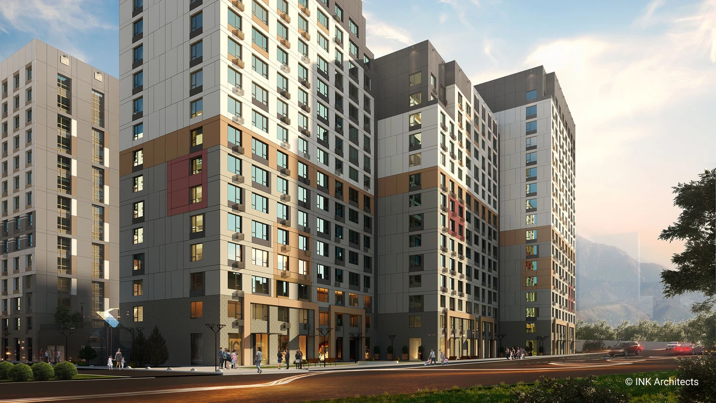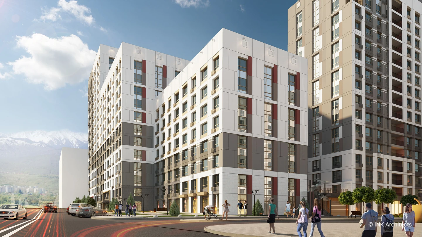 The residential complex "ALA Park" has gathered the energy of urban life, thanks to its historical location where a bus depot of the southern capital once stood. Inspired by the unhurried pace of old trams, the project concept predominantly embodies coziness and tranquility. With this aim, the ALA Park image is created with strict design principles and minimalist lines. The architectural ensemble combines buildings of varying heights, unified by a harmonious color palette, presenting an example of classical minimalism. To cultivate an atmosphere of tranquility and serenity, mini-gardens have been organized within the residential complex, allowing each resident to connect with the earth's energy and commune with nature. Moreover, to ensure safer outdoor strolls, the courtyard is fenced off from cars.