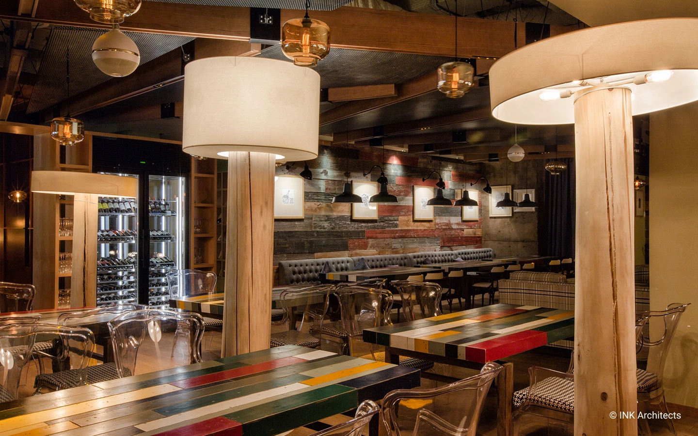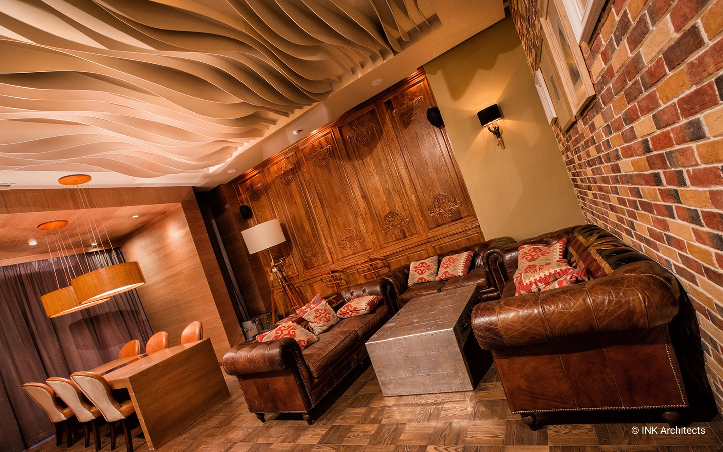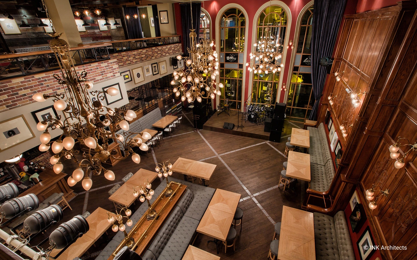 Barley Beer Restaurant is combined with a brewery. This was one of the main tasks in the aesthetic understanding of the interior space.