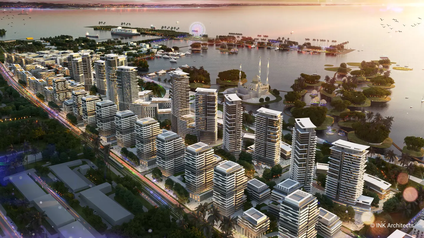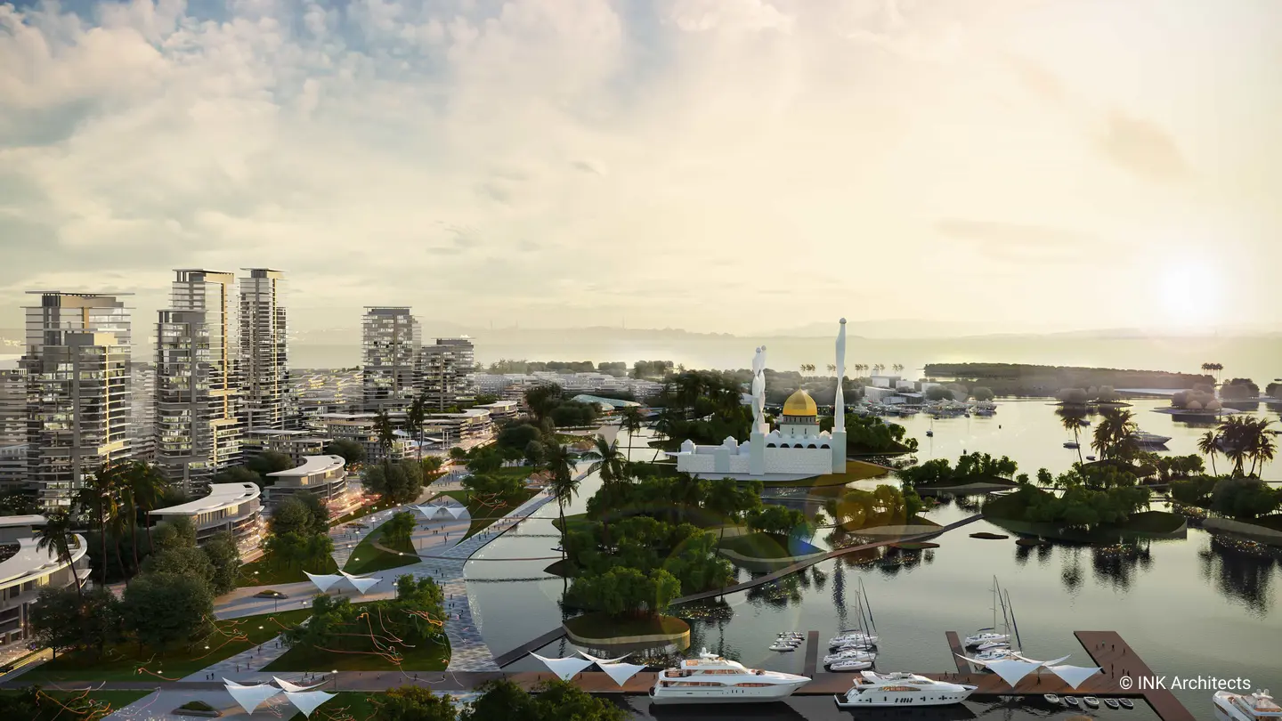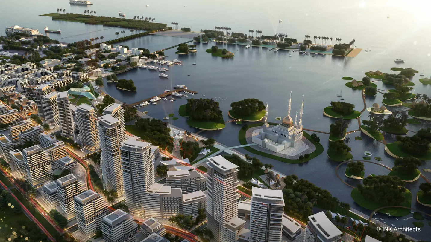 Climate change and rising sea levels pose serious threats to coastal cities. Architects and engineers around the world are addressing this issue using the built environment. We propose creating a series of artificial islands. They will be connected by automatic water barriers and will also serve as a focal point and playground for residents. They can be used for sports, recreation, music festivals, promenades, or even for the construction of iconic buildings, such as a floating mosque.