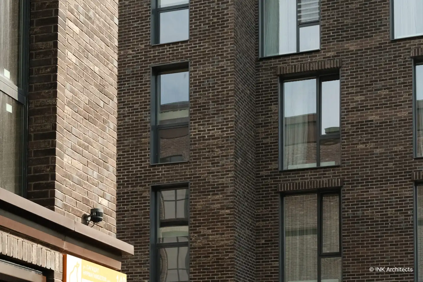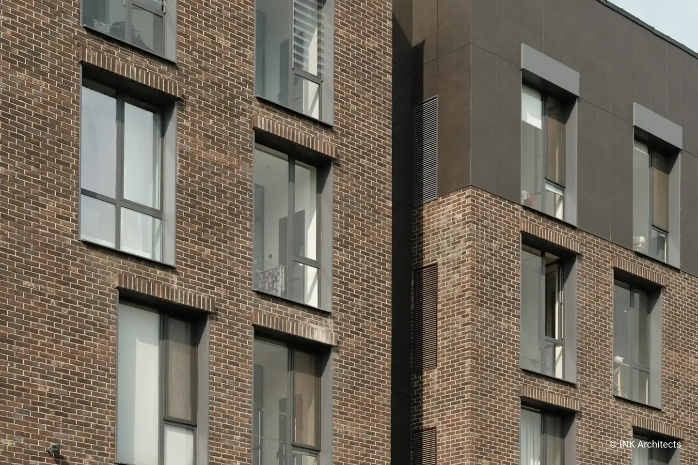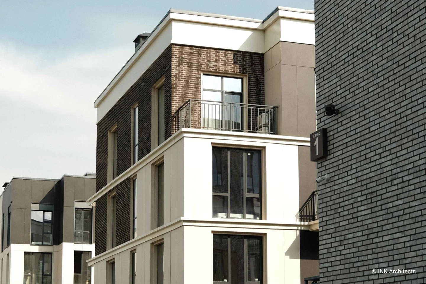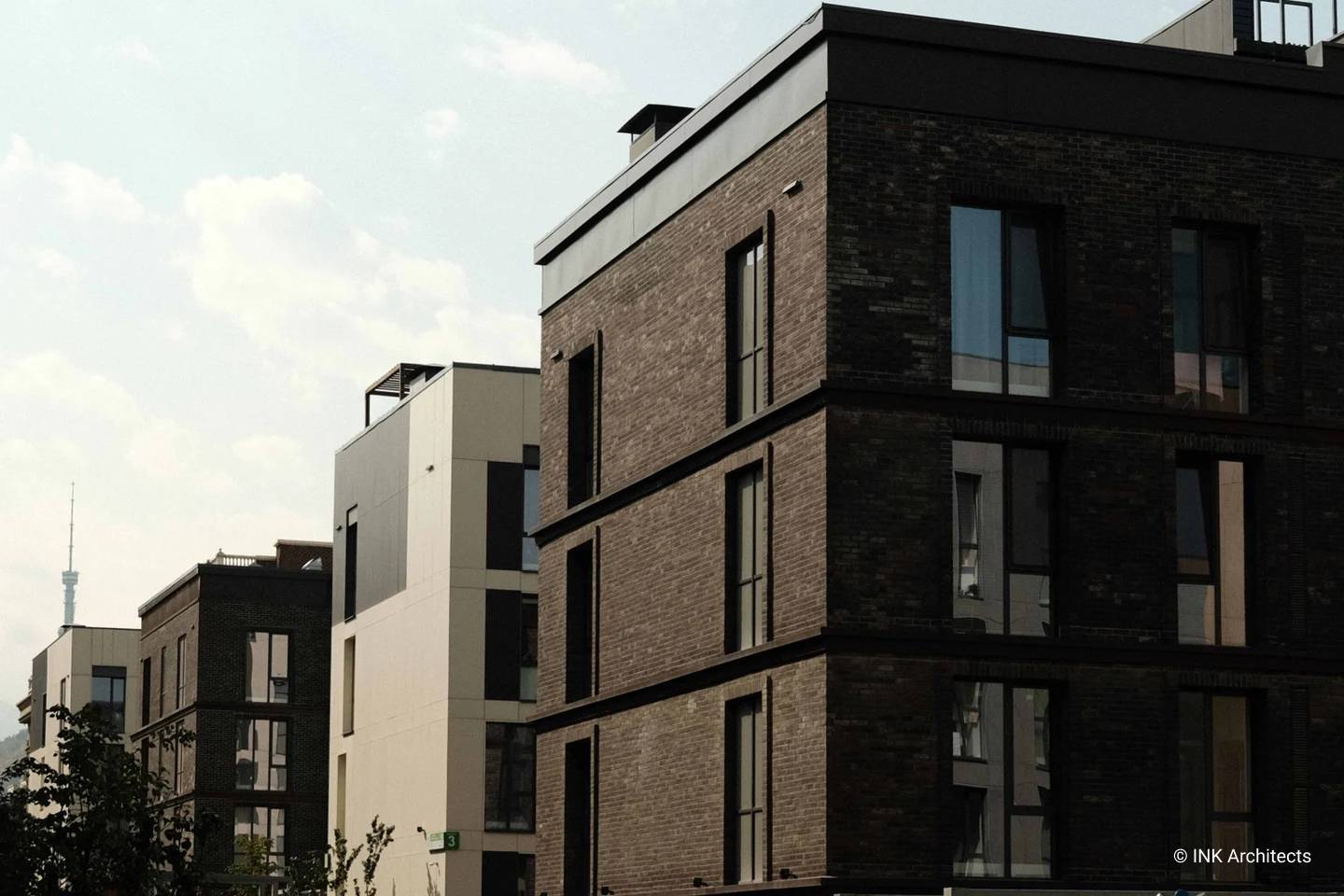 Архитектура Koktobe City сочетает в себе стили европейской неоклассики и современной архитектуры. Наружная отделка фасадов предусматривает использование высококачественных и экологичных современных материалов. Сочетания разных фактур и цветовых решений создают выразительность пластики фасадов. В проекте применены такие материалы, как натуральный камень, клинкерный кирпич, вентилируемые HPL-панели и алюминиевые фасадные панели. Также предусмотрено вертикальное озеленения для создания уютного зеленого дворового пространства.